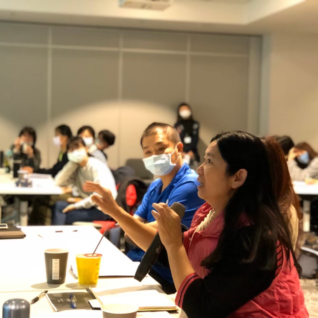 圖:講師許岑竹與參與老師交流想法