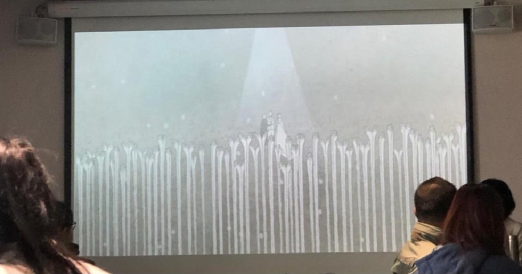 首先講師簡單介紹了動畫的類型及動畫的製作方式,舉例大家熟悉的皮克斯動畫屬於電腦動畫,而〈爸爸的房間〉屬於平面手繪動畫,兩者都是在虛擬空間(紙張、電腦)建構世界觀;不過也有在實體空間利用實體景物拍攝製作的動畫。動畫和真人電影最大的不同之處是被攝者非活體,或是說被攝者的狀態非似活體。會有此曖昧一說是因為真人動畫雖然是以真人為被攝者,但被攝者是以偶的方式呈現,所以和真人電影仍有別。在紙張上的虛擬空間,手繪動畫的深度由畫本身所構成,不如實體物會受三維空間限制,因此講師認為動畫不論從世界觀到生命的建立都是無中生有更為浪漫。