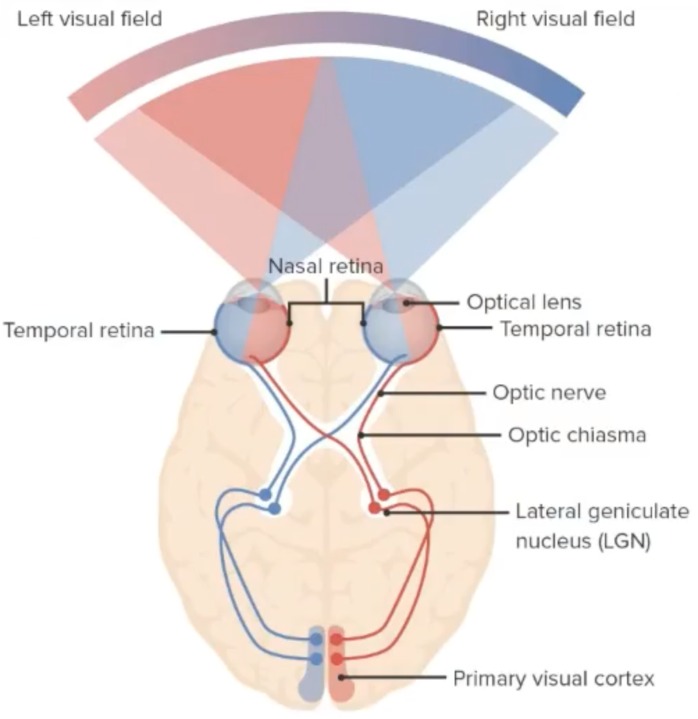 看似意味著尊重多元觀點,然而事實上,自生理構造便已奠定每個人將獲取迥異的觀看經驗。當畫面透過眼睛的水晶體將光線折射,投放至視網膜,視網膜偵測到光線、影像、外界的景象,便匯集到視盤的視神經,視神經將兩隻眼睛看見不同角度的畫面處理成為立體影像。通過視神經(Optic nerve)、走過視交叉(Optic chiasm),將來到處理早期訊號的外側膝狀核(LGN),抵達最後的初級視覺皮層(Primary visual cortex)。過程宛若火車一般,一站一站傳遞訊號,至腦袋最後方形成「初級的視覺」,接著,進入人們何以讀取這些訊號、產生差異的過程。(圖2)
