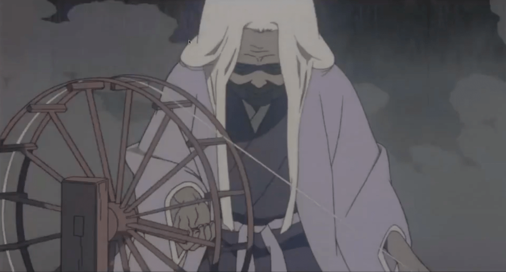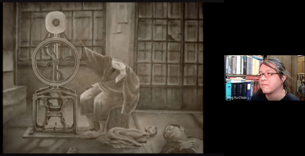 日本重要動畫導演川本喜八郎1974年的作品——《詩人的生涯》(圖7),便運用紡織機對應生命輪轉。觀眾看了到什麼?「一個疲憊的老婦,被紡織機的織線纏了進去!」「她身體消失了,是變成紡織機一部分嗎?」「感覺婦人變成絲線,然機器持續運轉。」