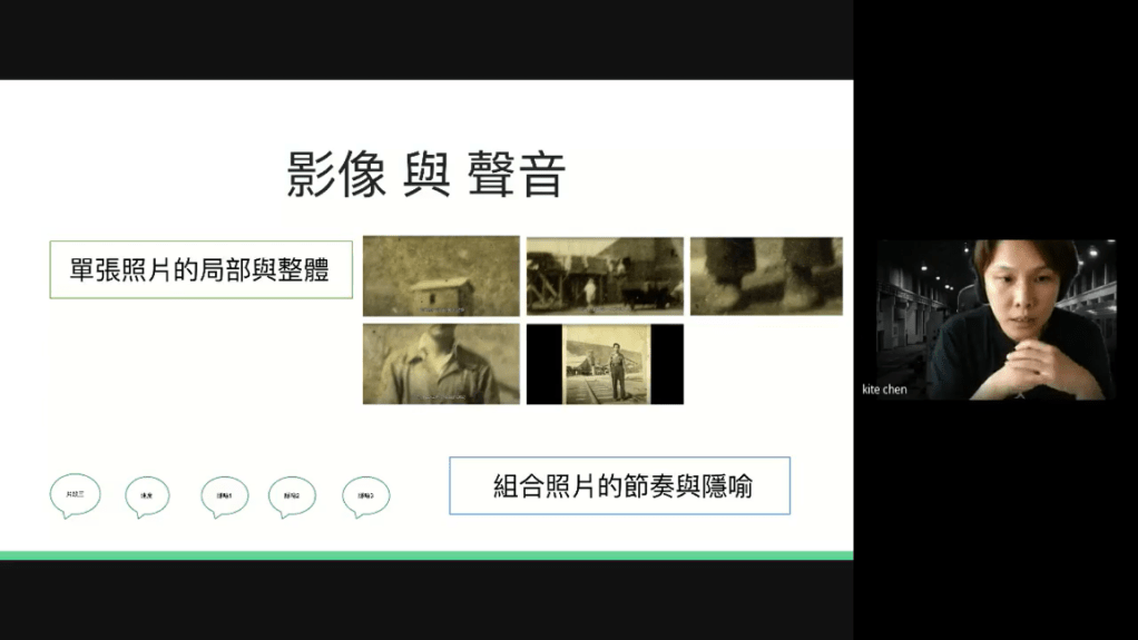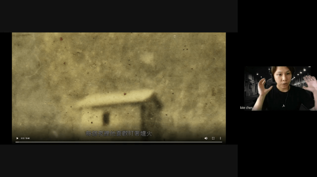 「我覺得中文的廣播好不真實。」有老師這樣提出。婉真講師暗示大家是否有發現,影片中不斷在闡述「聽得懂的語言與聽不懂的語言」,利用不同地區的廣播語言建構出異鄉與故鄉的不同維度,在語言的引領之下,故鄉在生活中既缺席又存在,中文廣播帶給觀影者生命中的經驗連結,或許來自於地理位置、或許是語言上的熟悉,而導演黃邦銓選擇以法語旁白呈現,他在電影裡說道:「在這裡沒有我的語言,我也失去了方向與時間。」作為身處法國的異鄉人,語言的衝擊也作為他與爺爺之間,兩條敘事線共享的身分與遭遇。