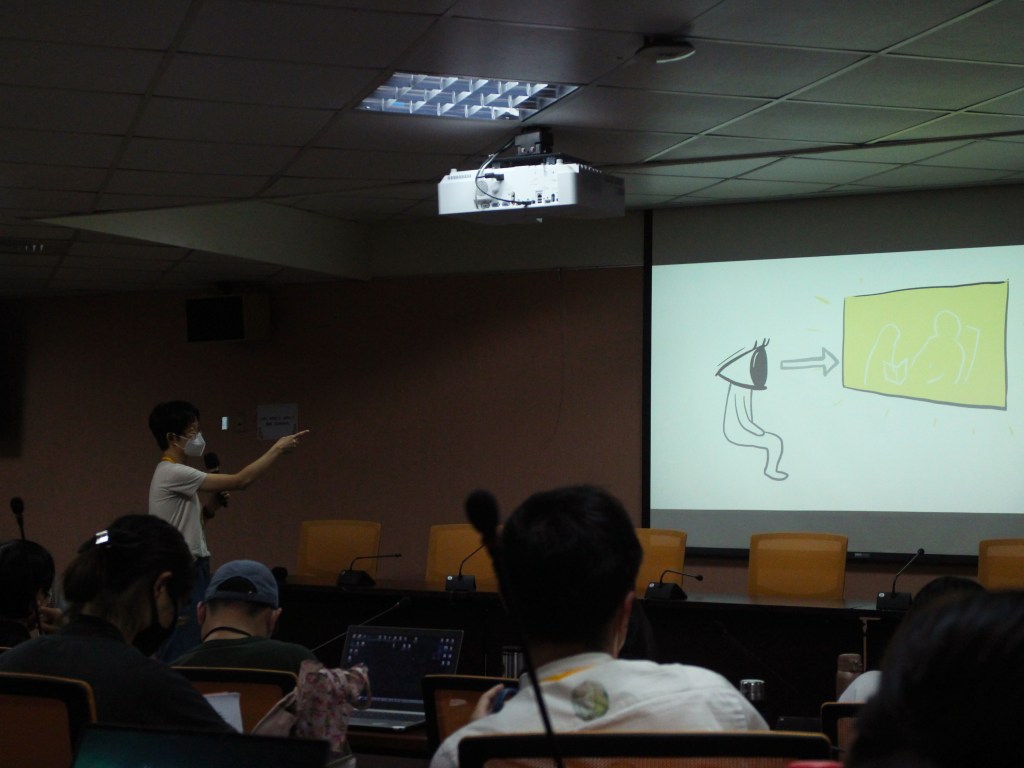 談及用影像「再現」情感,每個老師心中浮現出不同的主題——除了喪禮、兒女婚禮之外,有老師想像著在黑暗的房間裡獨守電腦螢幕追念過去,或在大掃除時偶然發現舊物而引發惆悵之感⋯⋯。詠亘業師表示:「每個人會想到的對象、情境或許不同,而不約而同的是,大家的回答反映出自身的經驗,也是自己最有感覺的畫面。影像的對面有個人,他可以是影片中的角色,亦可以是觀眾,甚至是自己。透過第一人稱視角,我們會不自覺與這個對象疊合。」