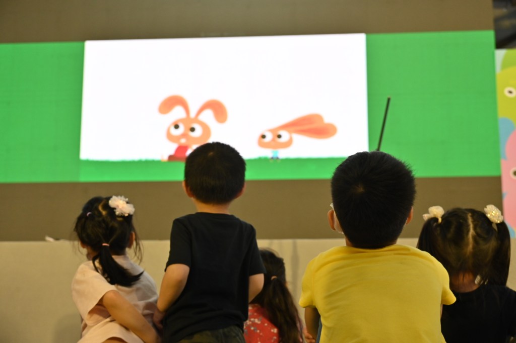 首先,紅豆哥哥讓聲音魔法師們觀看動畫《兔先生與小小兔》,透過仔細觀察影片中出現的角色與動作,讓大家思考並發揮想像力:這些畫面通常會出現什麼樣的聲音?要如何製造這些聲音呢?