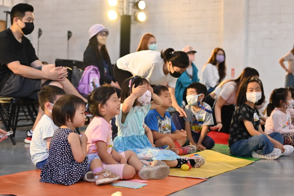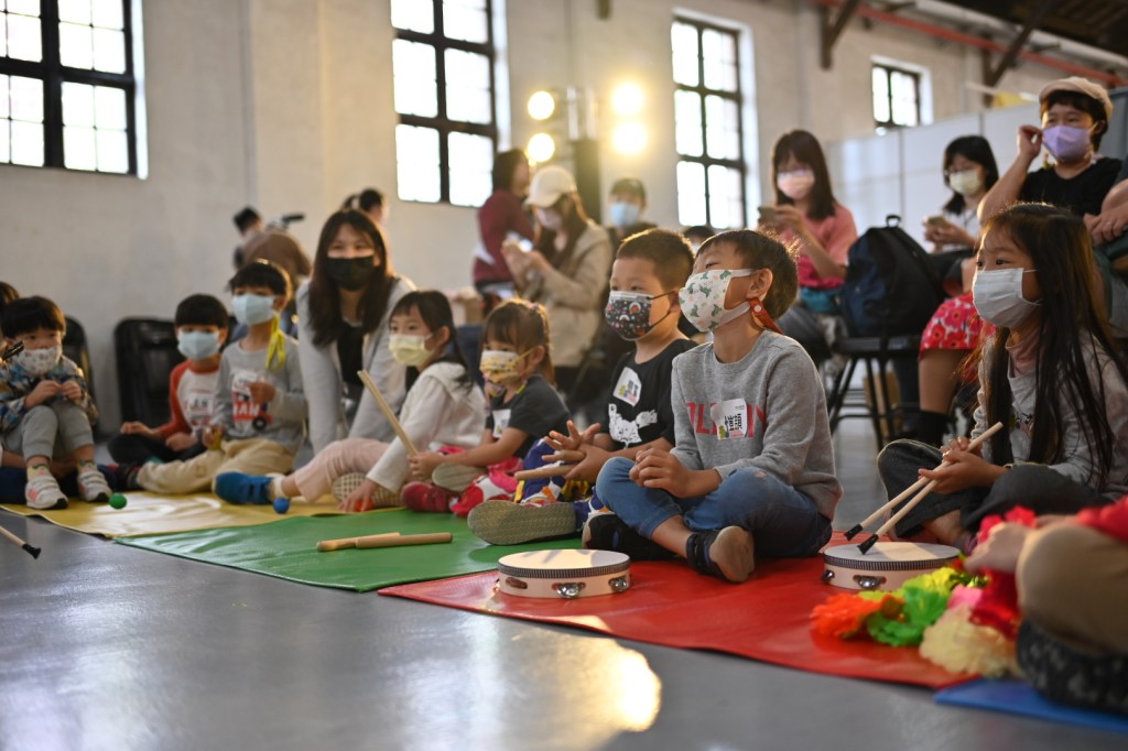 過程中,聲音魔法師們都十分積極地參與,除了好奇地拿起墊子上的道具,也會仔細聆聽道具發出的聲音。在練習影片配音時,大家都專心地看著一旁的提示色塊,雖然一開始還不太熟悉色塊出現的時間點,偶爾需要提示,但經過幾次練習後,大家變得更加熟練,在看到自己組別的顏色時都能順速反應,無論是快速敲打或搖晃手中的道具也能很好的相互配合!