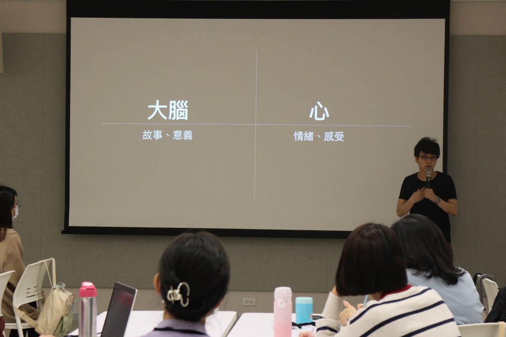 最後,講師向老師們建議,當進入教學現場時,除了區分教學中的問題是從心出發還是從大腦出發外,老師們要先找到一個說服自己「為什麼需要看這個?」「為什麼還需要去找到各種不同的電影,而不是透過串流平台演算法推薦我們的?」的理由,這些答案沒有正確與否,但可以幫助老師釐清自己的思緒脈絡,更有效將這部影片帶給學生!