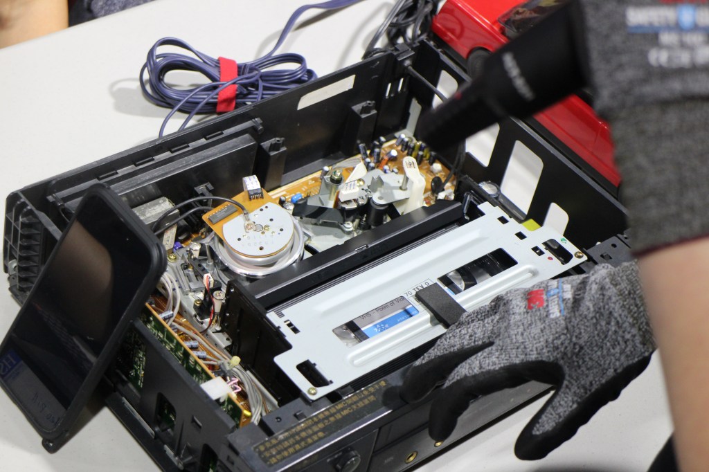 工作坊第二天的下午,於中央大學文學二館的戲劇教室裡進行了一場特別的演出,由影像創作者林羿綺為學員老師們現場表演「VHS家變詩篇」。所謂的VHS為日本JVC公司在1976年開發的家用錄影系統。講師戴上擁有多重保護的專業工作手套,以觸碰磁帶的方式製造影片中的雜訊,影像畫面為懷舊廣告、美式影集、卡通或任天堂遊戲的合輯,帶領觀眾進入記憶中的童年。