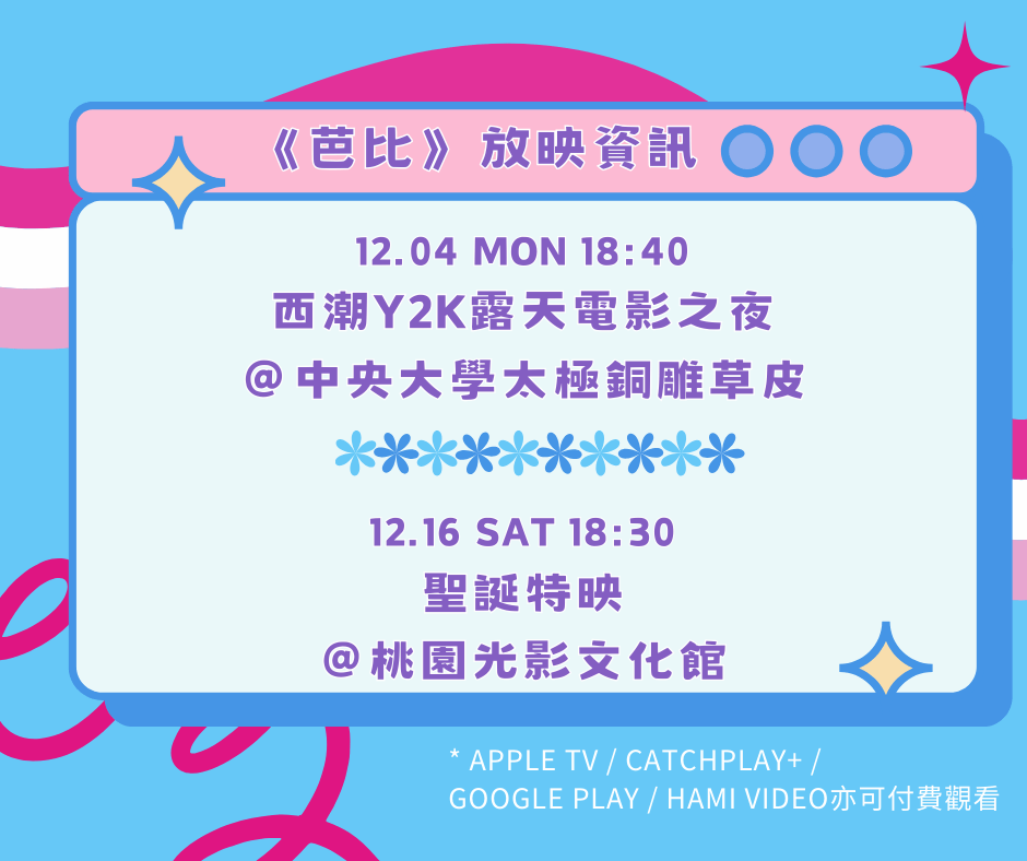 本活動未包含播映電影《芭比》,敬請於活動前完成觀影,可參考以下「放映資源」