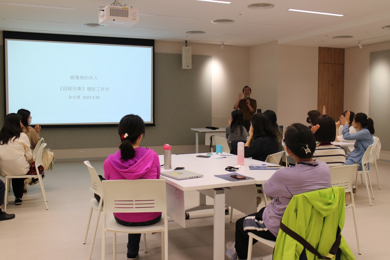 在電影《回程列車》中,導演以一張泛黃的老照片、不斷行駛的列車,勾勒祖父在歷史更迭下被迫離鄉與尋找返鄉之路的故事,過程中探討離散、身分認同、歸屬感等問題,世鐸講師以三部電影片段與一部紀錄片片段帶領在座教師一同探究。
