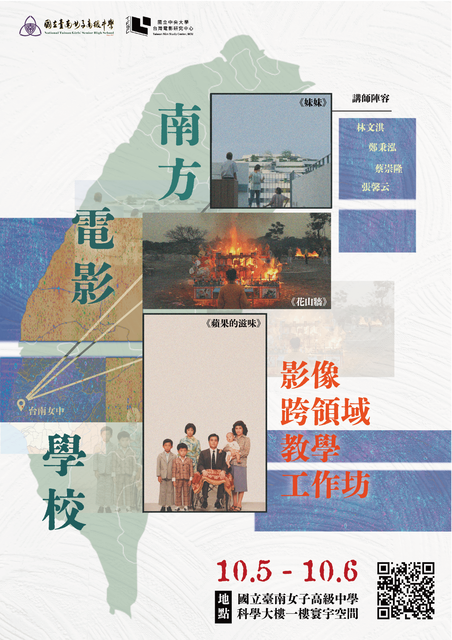 由國立臺南女子高級中學與國立中央大學電影研究中心合辦的「南方電影學校:影像跨領域教學工作坊」將在10/05(六)-10/06(日)舉辦,工作坊結合影像分析專業講座與跨領域學科小組討論,將電影融入素養導向教學,啟發教學方式的另一種可能性。